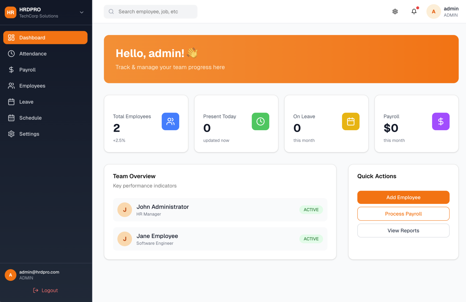 DEMO Aplikasi HRD – Manajemen karyawan perusahaan, dengan sistem Absensi dan Penggajian (Payroll).