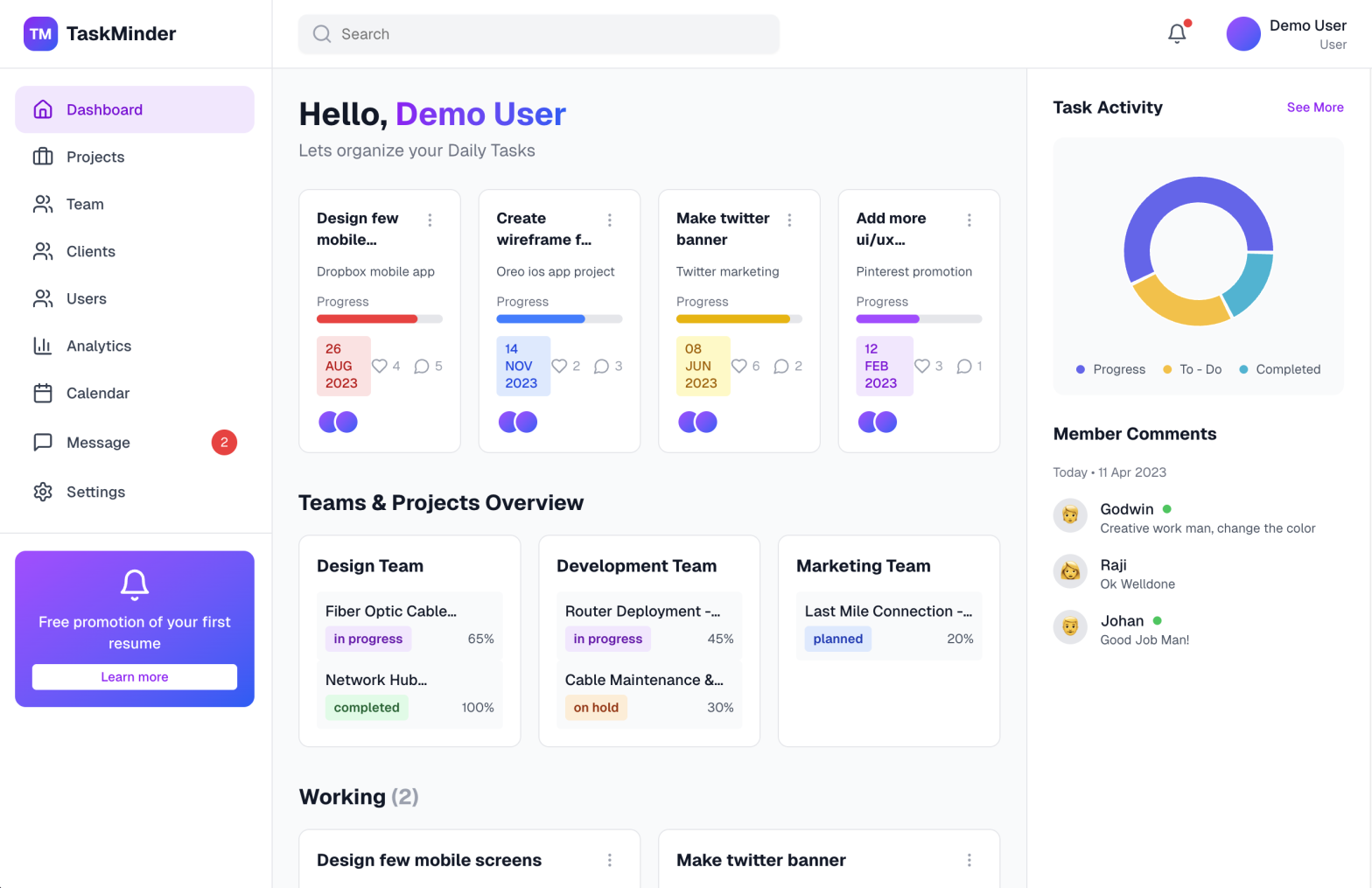 DEMO Aplikasi Manajemen Penugasan Proyek, dengan manajemen Proyek, Team, Client dan User.